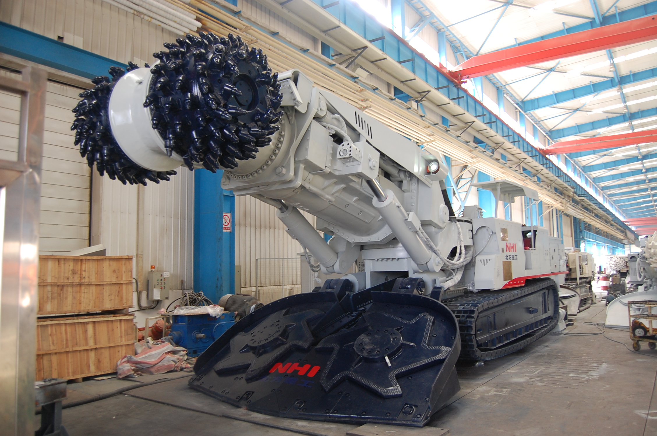 NHI is one of the earliest companies which design and product boring machine in China. NHI supply quality products to major domestic coal producers for many years. Now it has formed a series of boring machine such as EBZ120, EBZ132, EBZ160A, EBZ160A (short), EBZ200, EBZ220, EBZ240, EBZ260, EBZ320, EBH360. In 2012, NHI developed the EBH360 horizontal axis boring machine which is a breakthrough in the structural design and manufacture. It solves the problem of cutting transmission and achieves the conversion between two speeds. It also make it possible which hydraulic and electrical control in the hydraulic system at the same time. In the electrical system, it achieves remote control and profile cutting function. The technology is at a leading level in China.