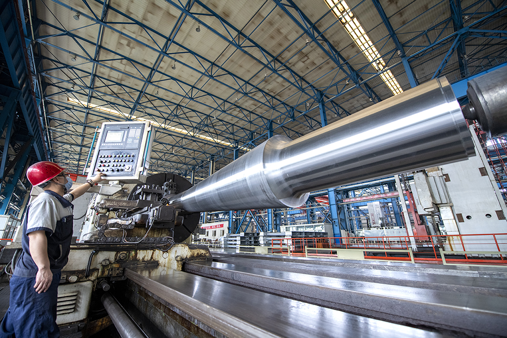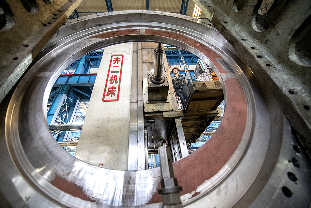 重大部件分厂员工正在加工旋回破碎机主轴